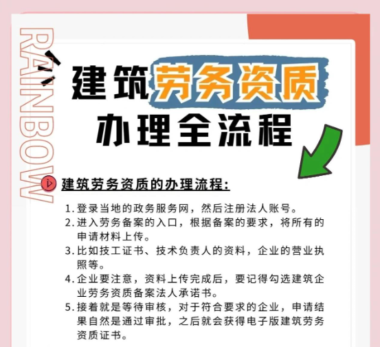 隨著建筑施工勞務(wù)資質(zhì)正式由審批制改為備案制,大大縮短業(yè)務(wù)流程,企業(yè)申請(qǐng)施工勞務(wù)資質(zhì)可以做到當(dāng)天就能拿到資質(zhì)證書(shū)......
